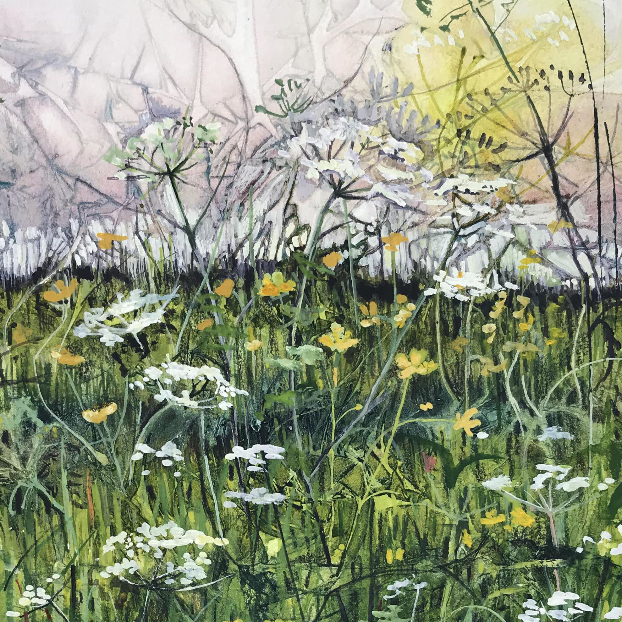 The winter brings new challenges for me. I love the textures and spikey foliage, especially bracken. When the sun is low but it's a clear day the combination of vibrant colour and texture offers a great starting point for further expression and possibilities. This card was taken from an original painting. Measures 14cm X 14cm and comes with white envelope. Postage extra.